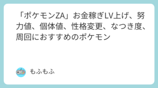 ポケモン 「ポケモンZA」お金稼ぎLV上げ、努力値、個体値、性格変更、なつき度、周回におすすめのポケモン お金稼ぎ、LV上げ、努力値、個体値、性格変更、なつき度、周回におすすめのポケモンなどをまとめて紹介してます 2025.11.04 ポケモンポケモンZA