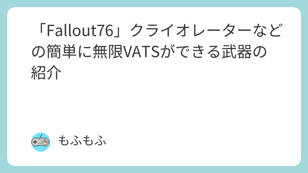 格段に使いやすくなって、簡単に無限VATSもできてしまう武器になったので紹介したいと思います